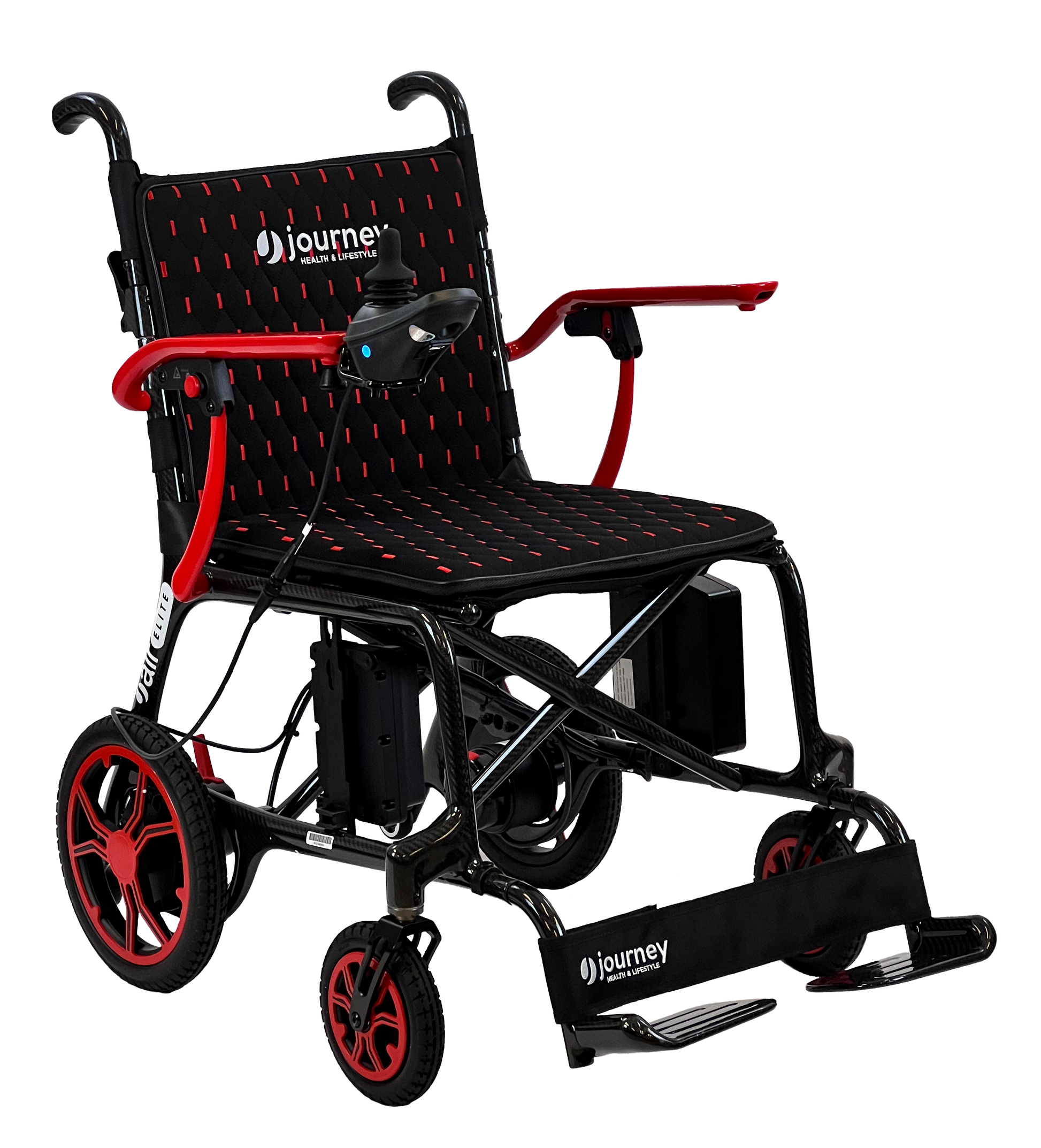 The Journey Air Elite power chair holds the distinction of being the world's lightest, weighing only 26 pounds without the battery. Despite its portability, this chair delivers top-tier performance thanks to its powerful dual drive system and user-friendly joystick, which allows for swift and secure navigation. In addition, the chair's compact design makes it effortless to manner within homes, easily passing through doorways and positioning itself next to tables and desks. Its two brush less motors function independently, enabling the chair to turn on a dime.